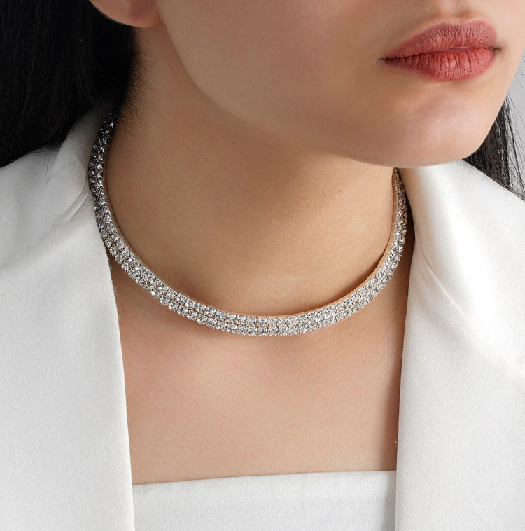 گردنبند طوق فول نگین آب کاری نقره ۲رج