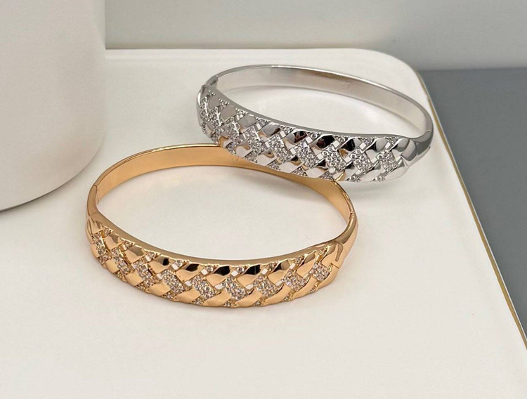 دستبند زنانه النگویی تراش و نگین پهن طرح طلا