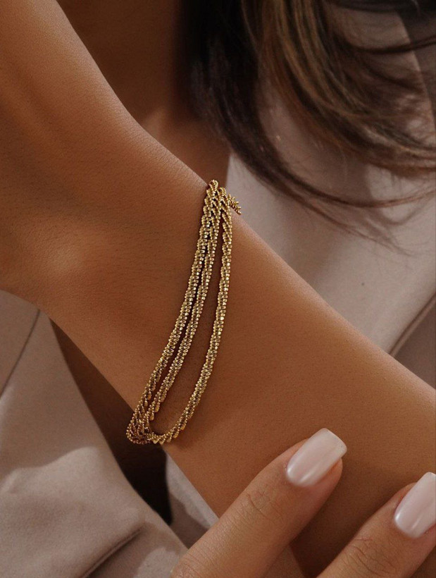 دستبند زنجیری زنانه سه لاین طنابی استیل
